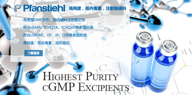 “熱烈祝賀Pfanstiehl的注射級甘氨酸Glycine(G-140)喜獲CDE登記號F20250000403, 這是Pfanstiehl產品獲得的第18個CDE登記號!”甘氨酸在醫藥輔料制劑中應用廣泛,, 可作為緩沖劑,增溶劑,穩定劑等,具有諸多優勢。Pfanstiehl秉承一貫高品質理念,為滿足全球生物制藥行業對于高品質甘氨酸的需求,隆重推出的注射級甘氨酸Glycine (G-140), 具有超高純度,超低內毒素,超低金屬殘留的特點,單獨檢測29種金屬離子,并且新增DNA,RNA,DNA酶,RNA酶和脂肪酶,亞硝酸鹽等多項質量指標的檢測,符合多國藥典規定(USP, EP, BP, JPE, ChP),可用于生物治療性藥物和疫苗的生產。產品信息:· 產品名稱:Glycine, High Purity, Low Endotoxin, Low Metals, USP, EP, BP, JPE, ChP (G-140)· 中文名稱:甘氨酸· 分子式:C2H5NO2· 分子量:75.07 g / mol· CAS號:56-40-6· 產品貨號:G-140產品特點: · 超高純度,超低內毒素,超低微生物含量,超低金屬雜質殘留· 質量指標新增DNA,RNA,DNA酶,RNA酶,脂肪酶和亞硝酸鹽檢測· 符合多國藥典:USP, EP, BP, JPE, ChP· 符合ICH Q3D標準· 符合GMP標準· 已獲DMF和CDE登記號 產品應用:· 緩沖劑· 穩定劑· 增溶劑如果您對Pfanstiehl注射級別Glycine G-140感興趣,歡迎聯系Pfanstiehl 中國區代理商北京西美杰科技有限公司獲得如下詳細的產品概況說明文件和測試樣品。Pfanstiehl Inc.最新產品系列如下,歡迎聯系北京西美杰科技有限公司獲取100g裝免費樣品。北京西美杰科技有限公司為Pfanstiehl中國代理,為客戶提供完善的技術支持與售后服務。歡迎撥打西美杰客服電話400-050-4006或者登陸網站www_xmjsci_com.arivn.cn了解更多信息。 更多>